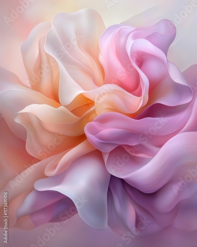 © Ai DreamscapesTH, Obraz premium Abstract Pastel Pink and Orange Fabric Swirls Soft Flowing Textile Texture Background