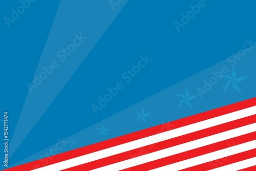 Obraz premium Abstract patriotic flat design is featuring deep blue rays, faint stars, bold red white stripes