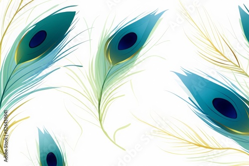 Obraz premium Abstract pattern featuring elegant peacock feathers on a white background,...