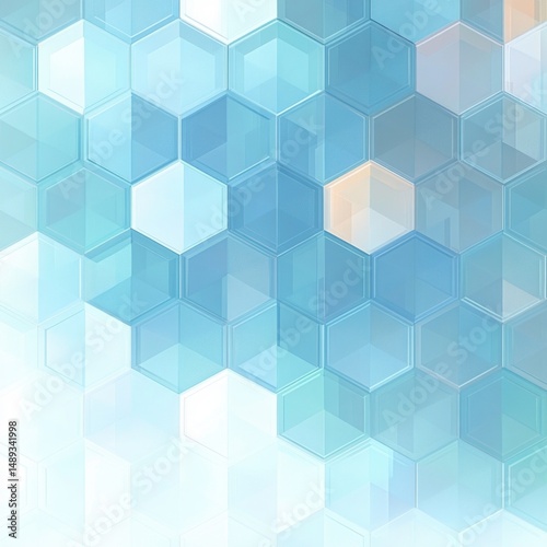© Milana, Obraz premium Abstract pattern featuring translucent blue and white hexagonal shapes creating a layered geometric design with soft light effects