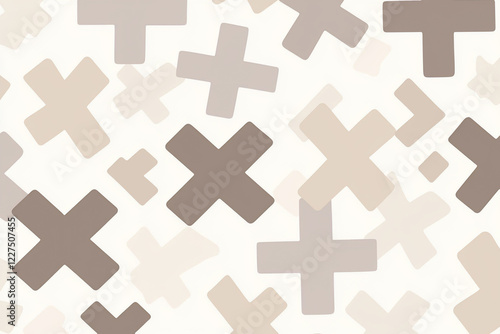 © Adi, Obraz premium Abstract pattern featuring various oversized crosses in muted tones on a light background, ideal for design