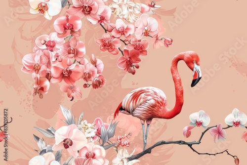 © Chand Abdurrafy, Naklejka premium Abstract pattern flamingo and orchid in pink pastel colors