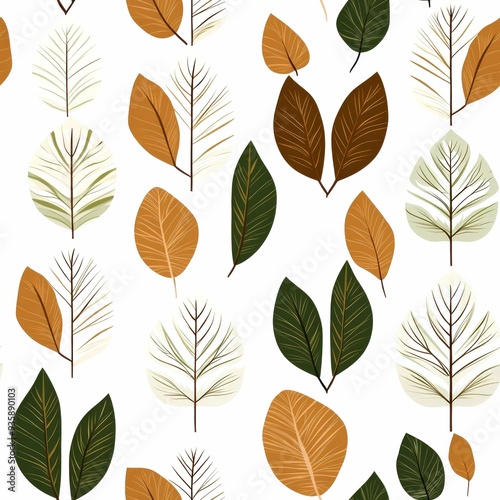 Obraz premium Abstract Pattern of Brown, Green, and White Leaves