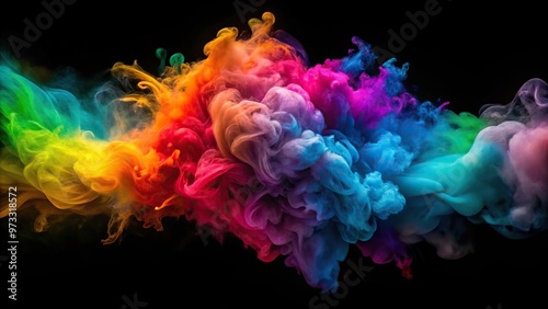 © yuwaree, Obraz premium Abstract pattern of colorful paint, water, or smoke against a dark background