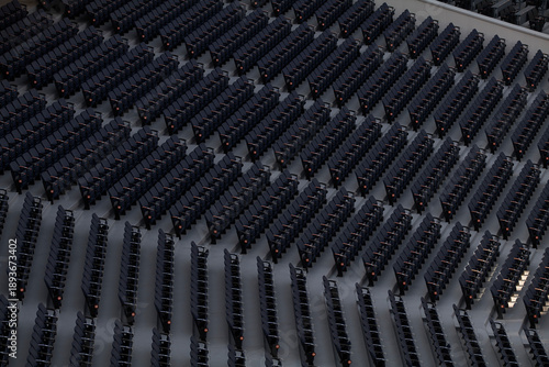 © Namsun, Fototapeta premium Abstract pattern of empty dark stadium seats