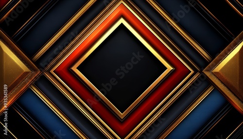 © Nob, Obraz premium Abstract Pattern of Intersecting Gold, Red, and Blue Frames