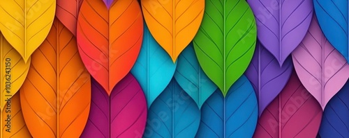 Naklejka premium Abstract pattern of overlapping leaves, vibrant colors, geometric style,...