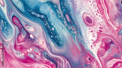 © fourtakig, Obraz premium Abstract Pattern of Swirling Ink Drops in Vibrant Water Colors