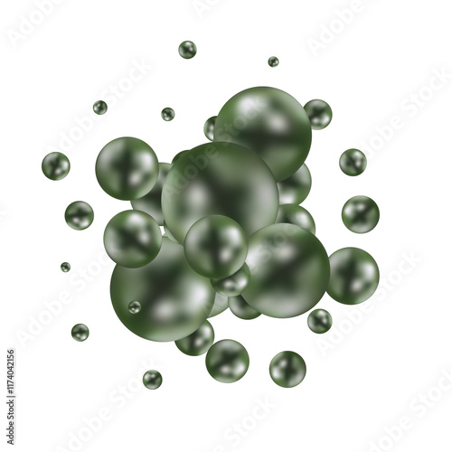 Fototapeta premium Abstract pattern with glass green balls or precious pearls. Glossy realistic ball. Png