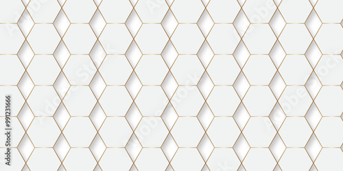 © Art By Afna, Fototapeta premium Abstract pattern with hexagonal white and gray technology line paper background. Hexagonal 3d vector grid tile and mosaic structure simple style hexagonal graphic concept. Futuristic surface design.