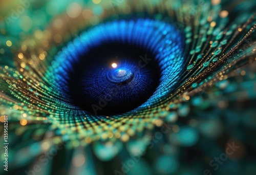 Naklejka premium Abstract Peacock Feather Detail with Vibrant Blue and Gold Colors