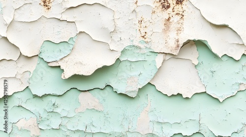 © Solaiman, Obraz premium Abstract Peeling Paint Texture Mint Green White Wall Background