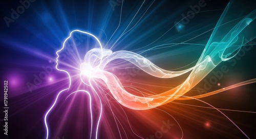 © Fightstar, Fototapeta premium Abstract person silhouette with surreal light transition