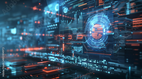 © stockdevil, Obraz premium Abstract perspective financial technology sci-fi background