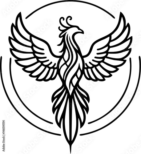 © nurhasanah, Fototapeta premium Abstract Phoenix Flame Tattoo with Rising Shape and Vector Symmetry