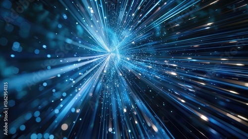 © Molly P, Naklejka premium Abstract picture micro light sparkling particle represent data flow vivid flowing wave with high tech background, create digital effect scene perfect for energetic and fantasy wallpaper design. AIG53.