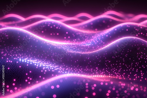 Fototapeta premium Abstract pink and blue glowing wave with particle effect.