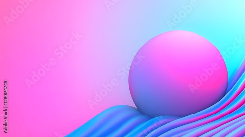© Wachirasak Jamwimol, Obraz premium Abstract Pink and Blue Sphere on Wavy Surface