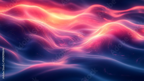 © Wida, Obraz premium Abstract Pink and Blue Wave Energy Landscape