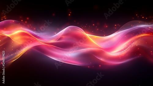 © Ponpes, Fototapeta premium Abstract Pink and Orange Wave with Glowing Particles