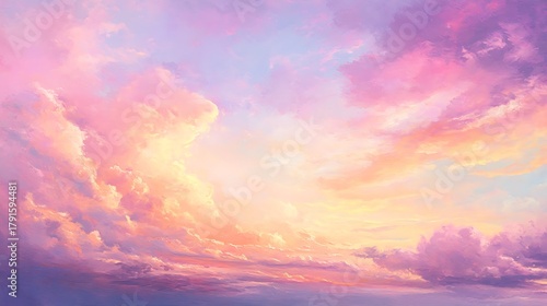Obraz premium Abstract Pink and Purple Sky with Cloudscape, Impressionistic Brushstrokes,...
