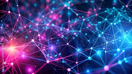 © Yauhen, Obraz premium Abstract Pink Blue Network Connection Dots Lines