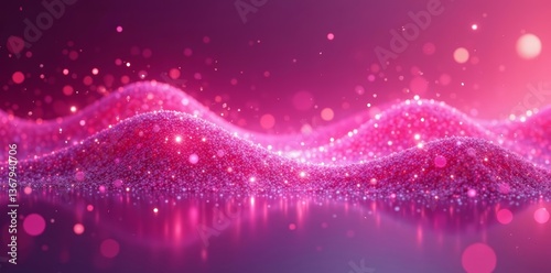 © DITSARAPHAN, Obraz premium Abstract pink glitter wave with glowing lights and shimmering sparkles, abstract, sparkle, glitter