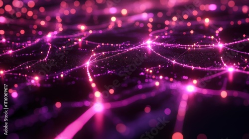 Fototapeta premium Abstract pink glowing particles and lines.