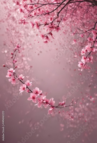 Obraz premium Abstract pink sakura petals swirl, ethereal background, soft, serenity,...