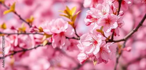 © Chalermrach, Fototapeta premium Abstract pink spring blossoms, soft focus, delicate petals, blooming cherry tree, abstract, bloom