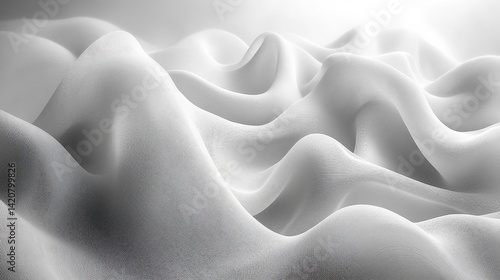 © RizalAziz, Obraz premium Abstract Pixelated White Terrain with Smooth Wavy Patterns and Soft Lighting