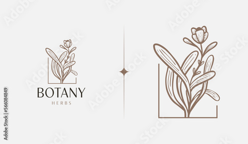 © Guna Studio, Fototapeta premium Abstract Plant Botanical Flower Line Art Line Drawing. Universal creative premium symbol. Vector illustration. Creative Minimal design template