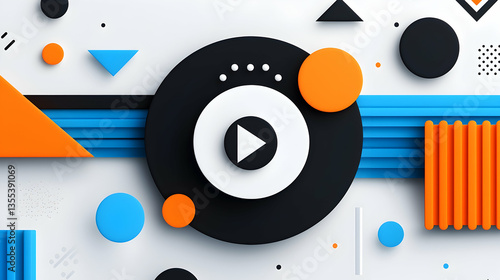 Obraz premium Abstract Play Button with Geometric Shapes and 3D Design