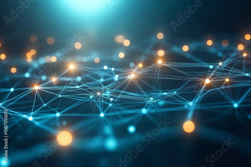 Fototapeta premium Abstract Polygonal Background with Geometric Patterns, Technology-Inspired Network Connections, and Futuristic Digital Design in Blue and Green Tones, Symbolizing Connectivity, Innovation