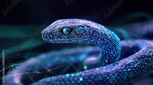 © SlashStd, Fototapeta premium Abstract polygonal blue snake with glowing points.