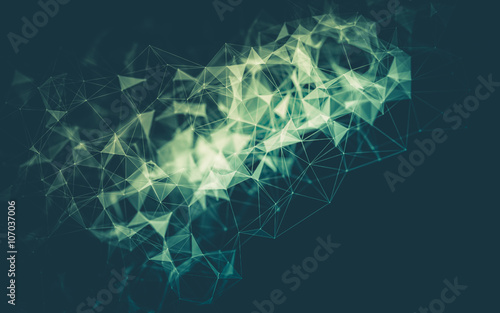 © teerawit, Obraz premium Abstract polygonal space low poly dark background