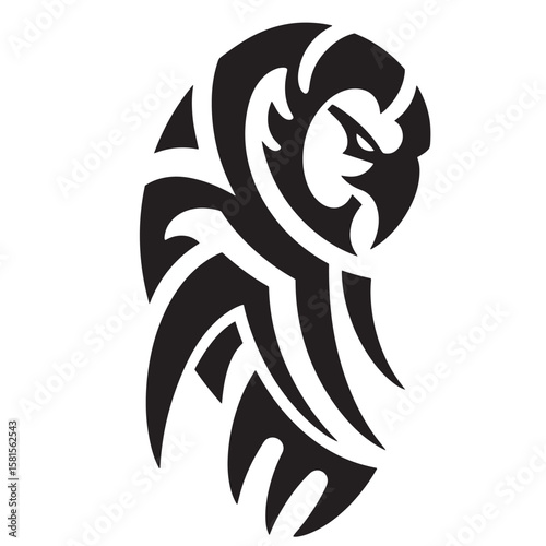 © vectorartdesigner, Naklejka premium Abstract polynesian style tribal tattoo design depicting a powerful owl symbol