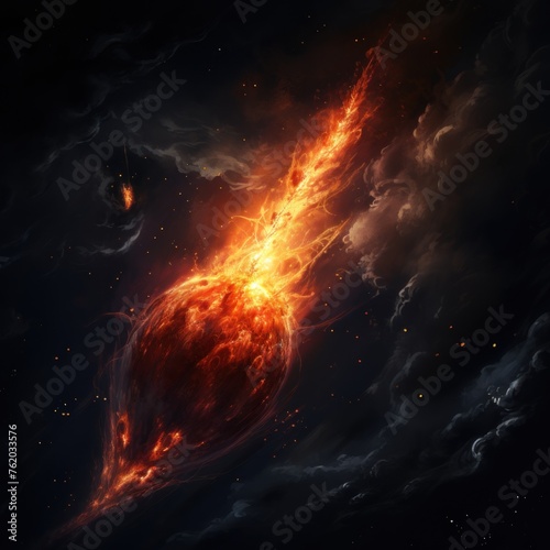 © aulia, Obraz premium abstract portrait Fiery explosion on a dark background with stars all around