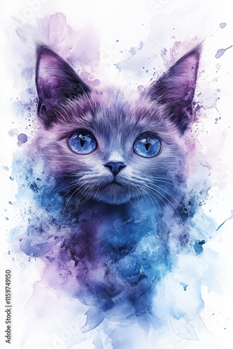 Fototapeta premium Abstract portrait of a cat in blue and purple colors