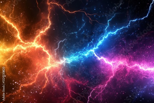 Obraz premium Abstract portrayal of colorful lightning in a quantum aesthetic.