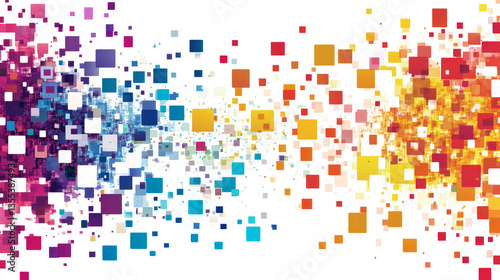 © Sahraya, Fototapeta premium Abstract poster concept vector illustration. Minimalistic and color brochure design, creative solutions, modern background. Geometric element. Colorful squares. Frame with text.