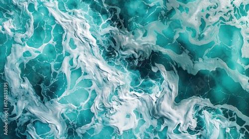 © The 2R Artificiality, Naklejka premium Abstract poster with teal blue and green marble texture and ocean foam background