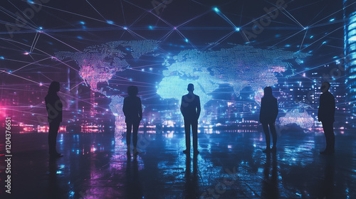© Teeraphon, Obraz premium abstract professional business team people innovation connection of line from nail node to node on map background , networking concept