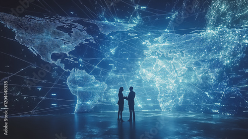 © Teeraphon, Fototapeta premium abstract professional business team people innovation connection of line from nail node to node on map background , networking concept