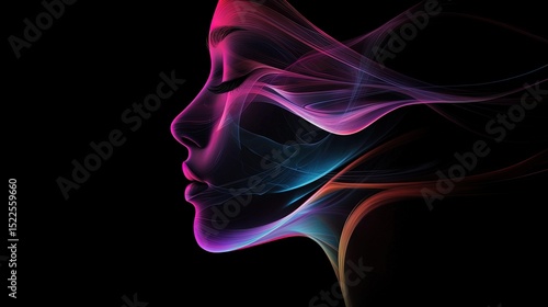 © Nuriya, Naklejka premium Abstract profile of a woman's face, outlined in vibrant colors.