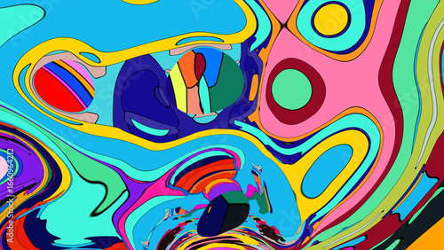 Obraz premium Abstract Psychedelic Brutalism Wave Blob Striped Motion Curves Composition...