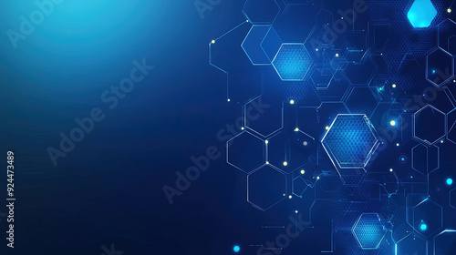 © Ika P, Fototapeta premium Abstract purple and blue background with a hexagon pattern for technology. Abstract futuristic geometric tech. Technology, science or business concept. Futuristic geometric pattern. Copy space area