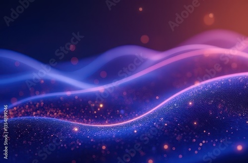 © Dee, Fototapeta premium Abstract Purple and Blue Energy Waves with Glowing Particles