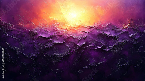 © Arif, Obraz premium Abstract purple and orange textured landscape digital art