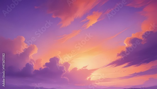 Obraz premium Abstract purple and orange watercolor sky, soft edges, painterly texture ,...